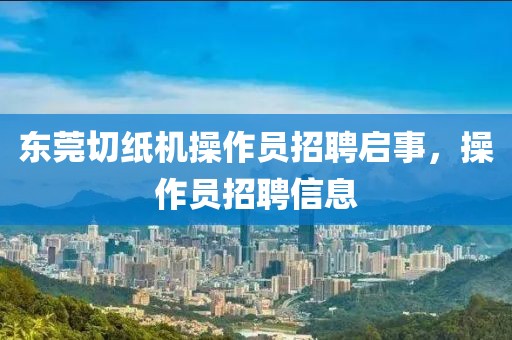 东莞招聘切纸机操作员启事:我们正在寻找熟练的切纸机操作员加入我们的团队。该职位需要具备良好的操作技能和经验,熟悉切纸机的日常维护和操作规范。应聘者需有责任心,能够独立完成工作任务,同时具备良好的团队合作精神。工作地点在东莞,公司提供良好的工作环境和福利待遇。有意者请尽快联系我们,欢迎加入我们的团队!