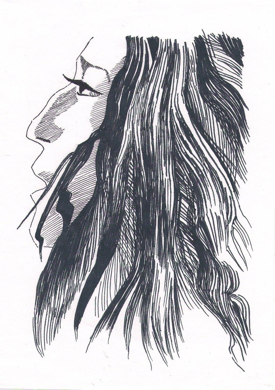 * 使用流畅的线条勾勒出头发的轮廓,然后添加阴影和高光,使头发更加立体。